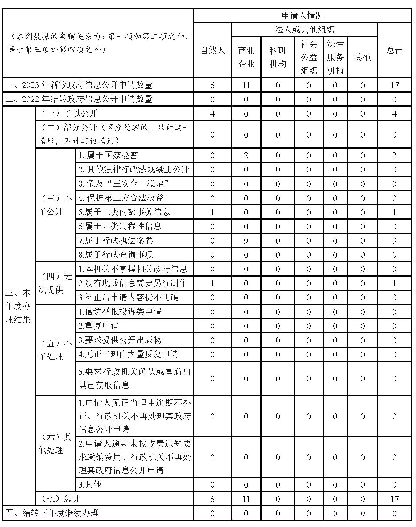 政府信息依申请公开渠道畅通,公民、法人或其他组织可通过局门户网站公开的《黄金城-黄金城娱乐城 政府信息公开指南》明确的渠道,采用书面申请(当面、传真和邮寄)、网上申请(平台、邮箱)等方式提出申请。严格按照《黄金城-黄金城娱乐城 政府信息公开工作暂行办法》,规范政府信息依申请公开工作程序。2023年,共收到网上系统申请的依申请公开政府信息申请17件,均依法依规答复,司法救济途径明确,没有引起行政复议和行政诉讼。