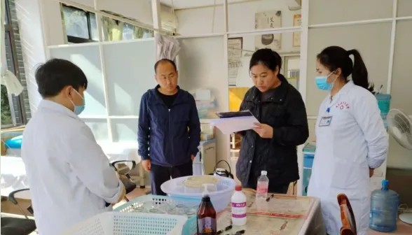 图为张学琴同志(右二)在医疗机构开展实地检查